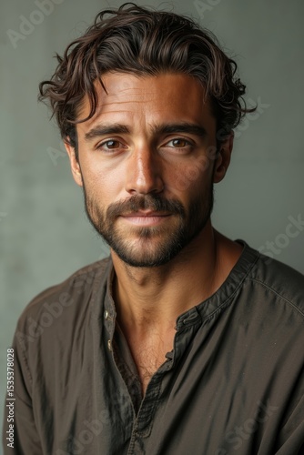 Fototapeta premium A man with a beard and a brown shirt
