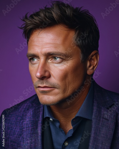 © hakule, Obraz premium A man with a beard and a purple jacket