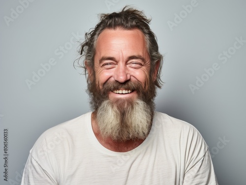 © hakule, Obraz premium A man with a beard and white shirt is smiling