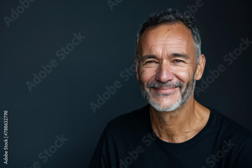 Naklejka premium A man with a beard wearing a black shirt smiles for the camera