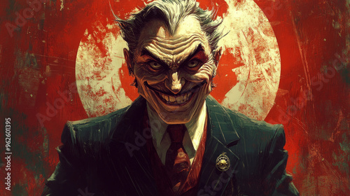 © Korawan, Fototapeta premium A man with a big smile on his face is wearing a suit and tie