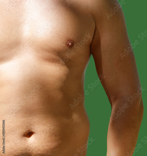 Fototapeta premium A man with a green background. His chest is bare.