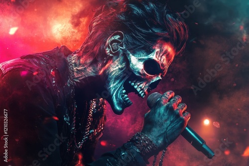 © Phuriphat, Fototapeta premium A man with a microphone is singing into it