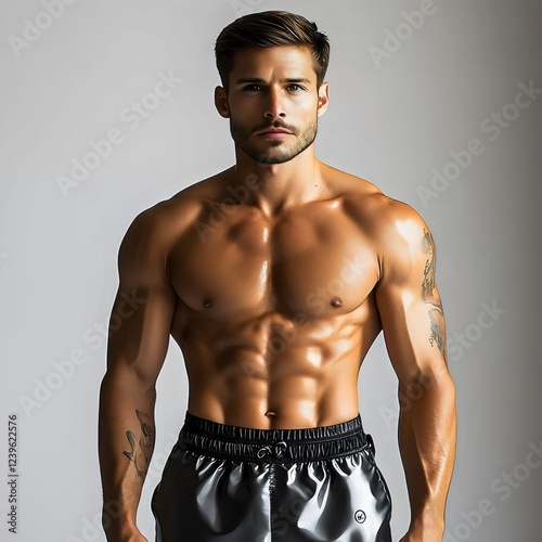 © Linus, Fototapeta premium A man with a muscular body poses for a photo