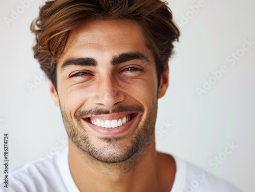 © auttawit, Fototapeta premium A man with a mustache and a smile on his face