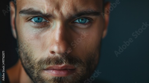 © Wattana, Obraz premium A man with a serious expression on his face.