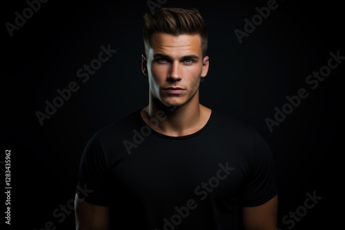 Naklejka premium A man with a shaved head and a black shirt