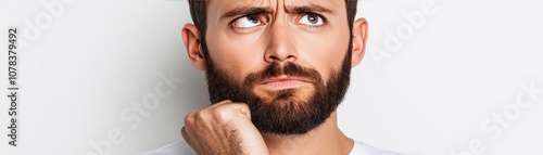 Fototapeta premium A man with a thoughtful expression, pondering a question or decision.