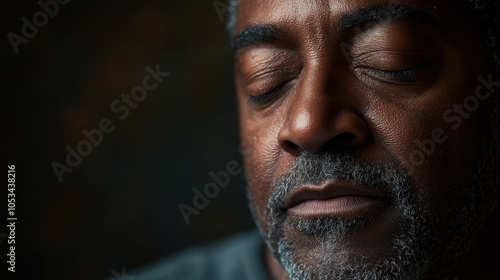 © AiPhotoSale, Fototapeta premium A man with a wise demeanor reflects on life as soft shadows emphasize his features. His downcast eyes evoke nostalgia, creating a profound, introspective atmosphere filled with experience.