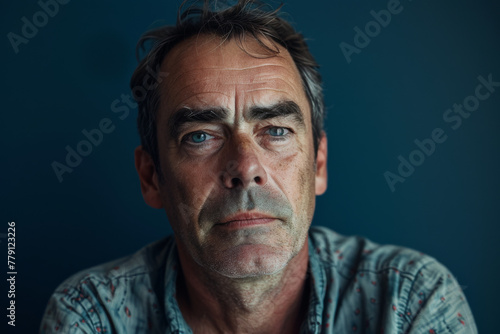 © MagnusCort, Fototapeta premium A man with gray hair and blue eyes looks at the camera