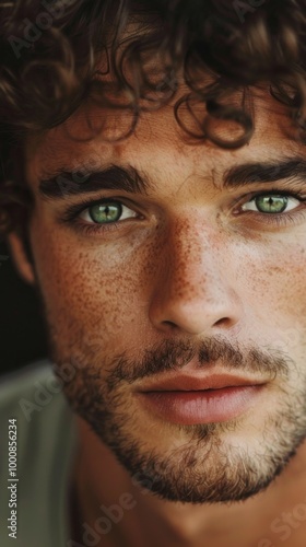 © liliyabatyrova, Obraz premium A man with green eyes and a beard