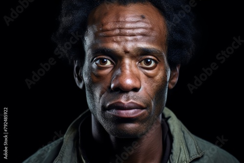 Fototapeta premium A man with long freckles on his forehead and nose. He is of African American nationality, around 40 years old.