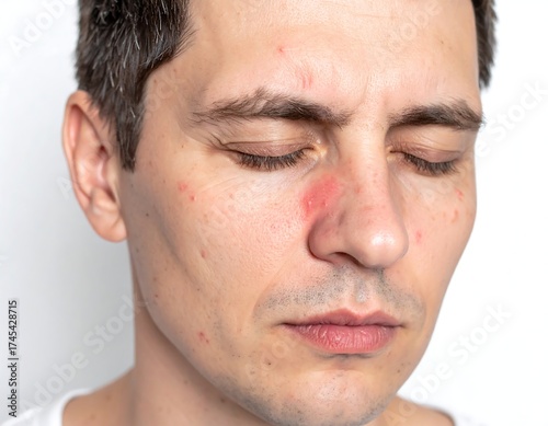 Obraz premium A man with skin inflammation on his face and closed eyes