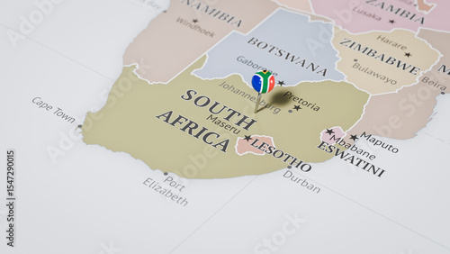 Fototapeta premium A Map of South Africa, with a Pin Featuring the South African Flag
