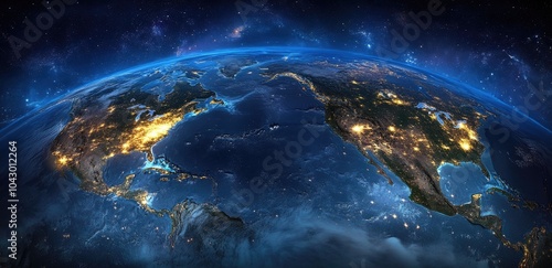 Fototapeta premium A map of the Asian region, in close-up, with bright lights shining on them from space.