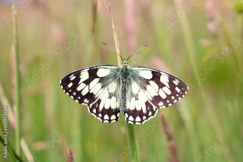 Naklejka premium A Marbled White Butterfly. Scientific name Melanargia galathea. Could be used for ID or a greeting card.