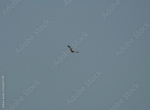 Obraz premium A Marsh Harrier (Circus aeruginosus) soaring over Minsmere in Suffolk, UK