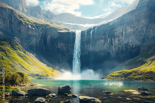 © Naseem, Fototapeta premium A massive waterfall cascading down from a steep rocky cliff.