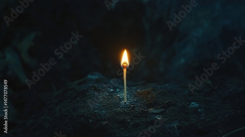 © วรรณภา มะโนศรี, Fototapeta premium A matchstick igniting with a small but bright flame in a dark room, illuminating the surrounding space briefly