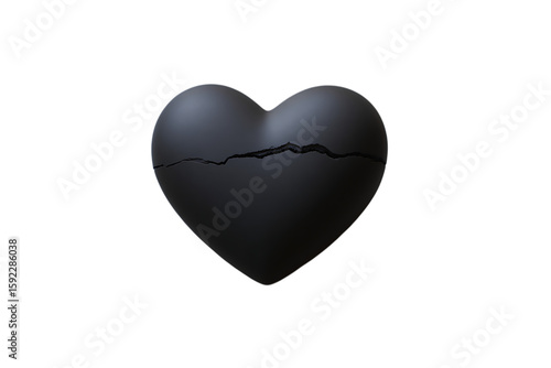 Fototapeta premium A matte black heart with a prominent crack down the center, isolated on a...