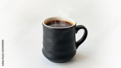 Obraz premium A matte colour coffee mug filled with steaming coffee set against a plain white background, inviting warmth and simplicity in its design.