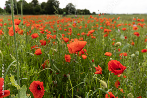 Fototapeta premium A meadow with many poppy blossoms (papaver)