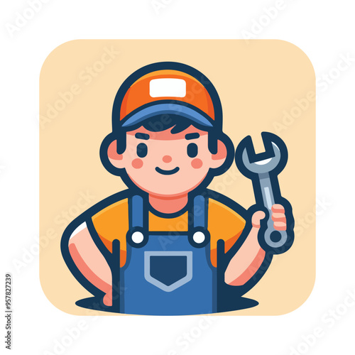 Obraz premium A mechanic wearing overalls and holding a wrench