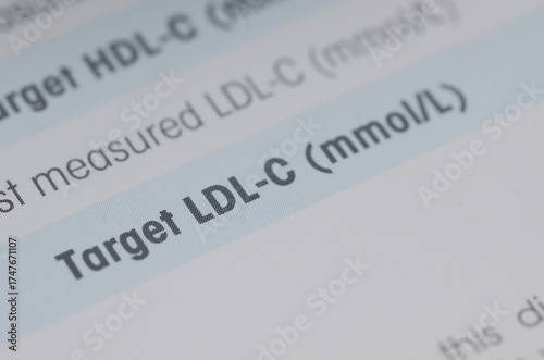 Obraz premium A medical document with the words "Target LDL-C" highlighted in blue,...