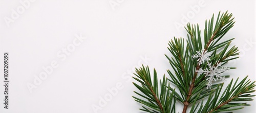 © Pixel Matrix, Obraz premium A Merry Christmas greeting card showcasing pine branches and snowflakes