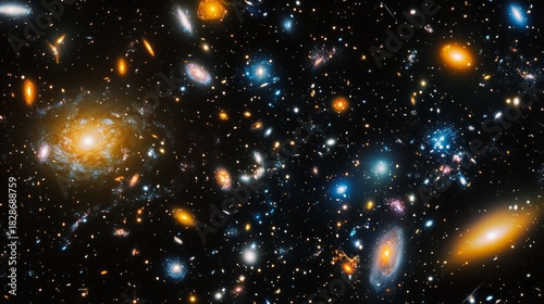 Fototapeta premium A mesmerising universe filled with galaxies and stars conveys the infinity of space, providing a magnificent backdrop for scientific and educational materials on astronomy.