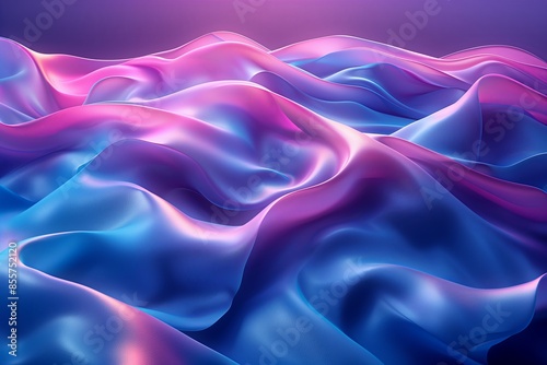 © Peeradontax, Obraz premium A mesmerizing abstract image featuring fluid waves of light in vibrant hues of pink, purple, and blue. The smooth, undulating forms create a sense of motion and fluidity, evoking the delicate texture