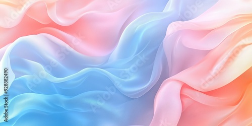 © Peeradontax, Obraz premium A mesmerizing abstract image featuring smooth, flowing waves in soft gradient colors of pink, blue, and subtle orange.
