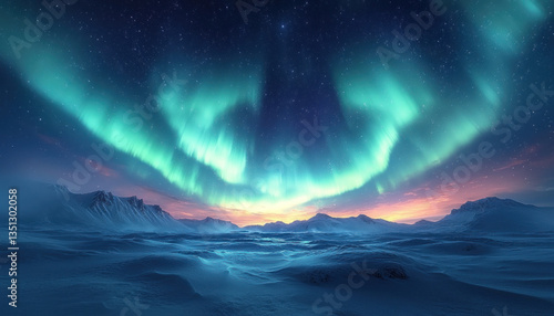 © Ihsanfrr, Naklejka premium A mesmerizing aurora display dances across the night sky
