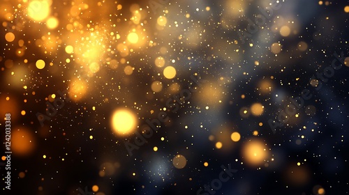 © Background, Obraz premium A mesmerizing background of golden bokeh lights against a dark backdrop.