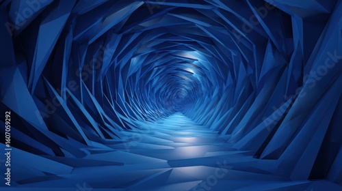 © CStock, Naklejka premium A mesmerizing blue geometric tunnel design that creates an illusion of depth and movement.