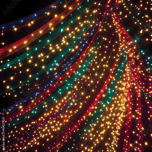 Fototapeta premium A Mesmerizing Canopy of Vibrant Holiday Lights Casting a Festive Glow Under a...
