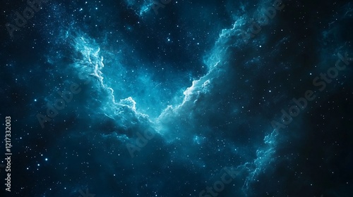 Fototapeta premium A mesmerizing cosmic scene filled with vibrant blue clouds and twinkling...