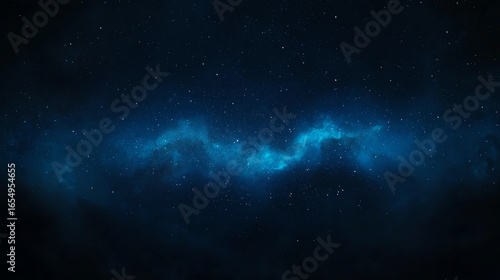 © Phuwadon, Fototapeta premium A mesmerizing cosmic scene showcasing a stunning nebula in deep space with vibrant blue hues and twinkling stars.