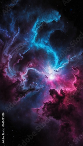 Fototapeta premium A mesmerizing cosmic scene showcasing vibrant blue and pink nebulae swirling...