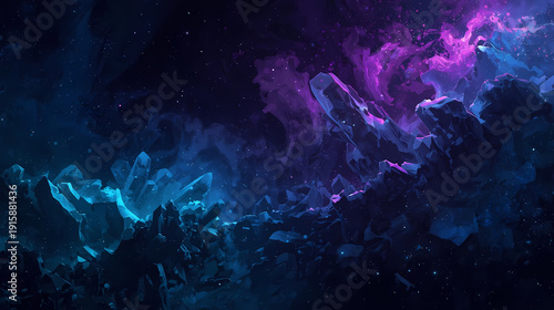 Obraz premium A mesmerizing cosmic scene with glowing crystals evokes wonder and mystery,...