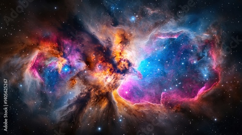 Fototapeta premium A mesmerizing deep-space nebula with swirling blue and purple hues, forming a...