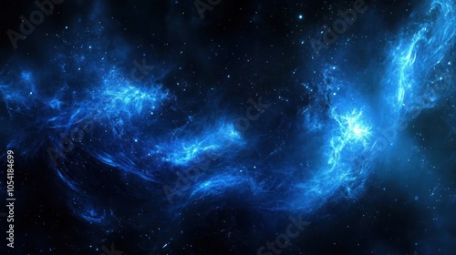 © Yeni, Obraz premium A mesmerizing depiction of cosmic blue waves in a starry space background.