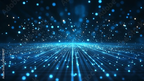 Fototapeta premium A mesmerizing digital landscape of blue lights and glowing particles,...