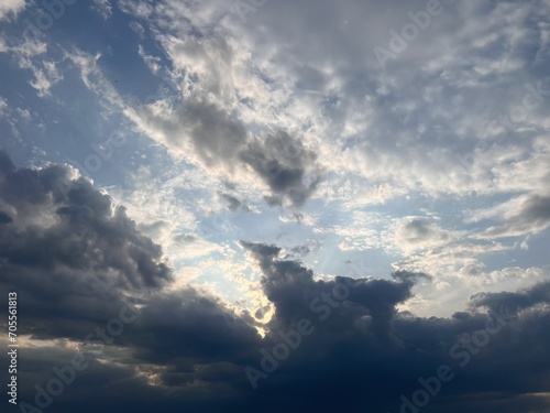 Obraz premium A Mesmerizing Display of Nature Artistry with White Clouds Painting Patterns on a Blue Canvas