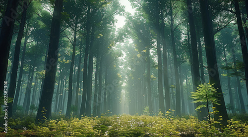 Fototapeta premium A mesmerizing forest of towering trees. Generative AI.