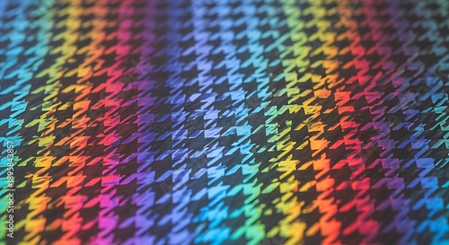 © Masaji, Obraz premium A mesmerizing full-frame view of a houndstooth pattern displays a brilliant holographic rainbow effect across its surface.