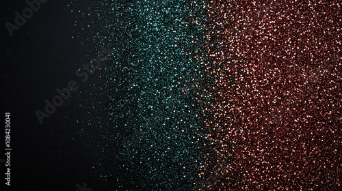 © WhoSleep, Obraz premium A mesmerizing gradient of shimmering particles, blending shades of teal and copper, creating a dynamic, abstract background effect.