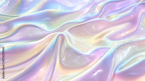 Fototapeta premium A mesmerizing iridescent fabric rippling gently, showcasing soft pastel...