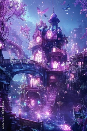 Obraz premium A mesmerizing magical fantasy world where humans and mystical creatures...