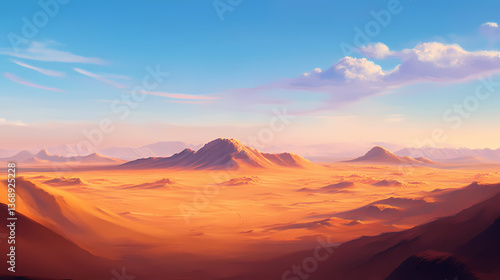 © Thiago, Naklejka premium A mesmerizing mirage on the horizon of a vast desert. Mirage Horizon. Illustration